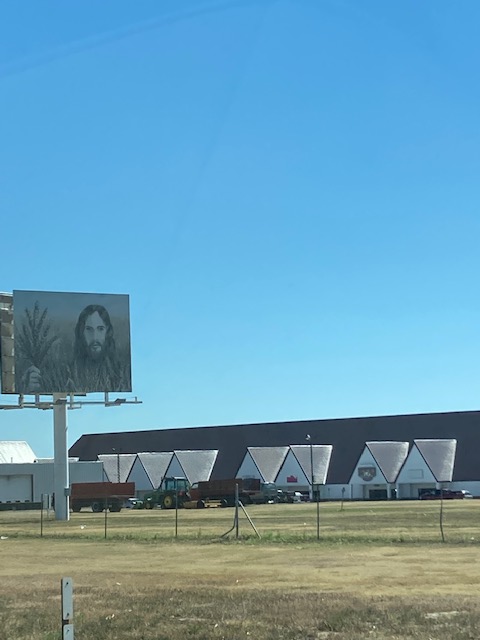 We picked out a cafe just off I-70. The description on the website said turn right at Wheat Jesus.