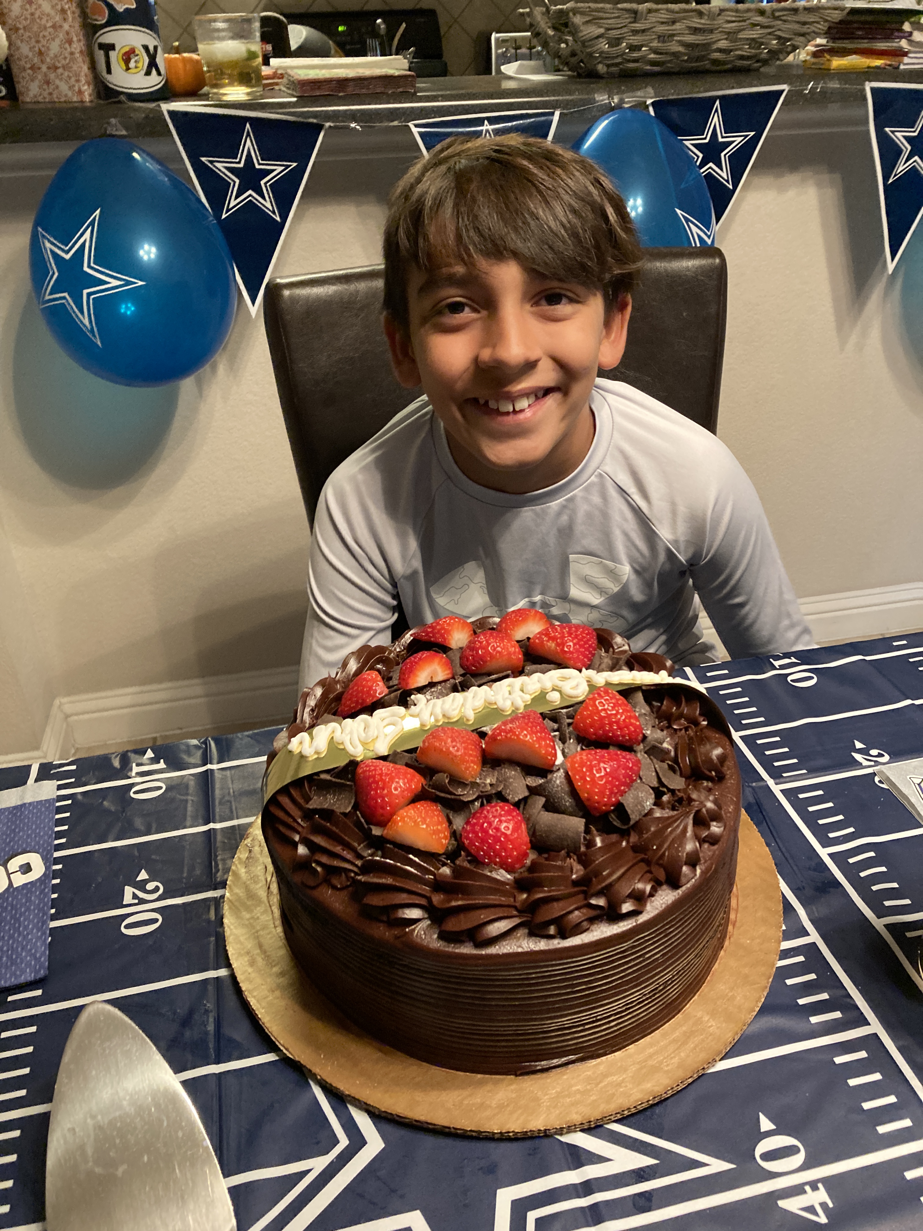 Yes, he is a Dallas Cowboys fan. Will and I bought a ton of decorations at Party City. The FG had a flag football game Friday night and caught the touchdown pass in a tie game. In overtime. Oh, the cheers of the crowd!