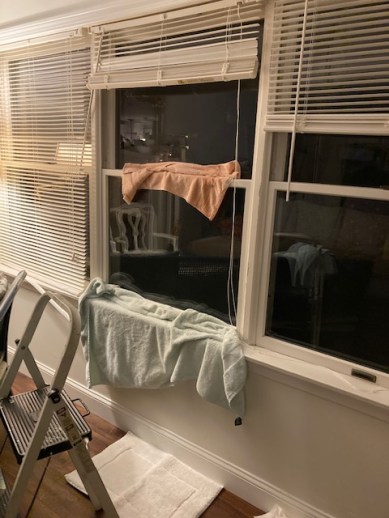 We bailed water from the tubs in the attic until midnight because, just as we were heading to bed, noticed that water was dripping down the inside of the living room windows.