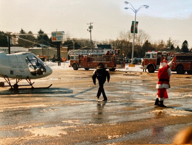 “Don’t tell your mother,” he begged. His usual transportation was a fire truck, but when the opportunity arose to arrive by copter he just couldn’t resist. My mother never knew.