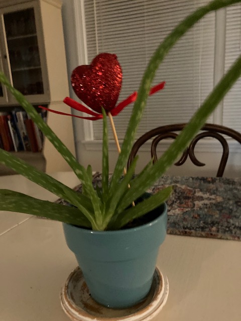 This is an aloe Vera plant I brought home from Austin. Son Will grows massive aloe Vera plants, so at Christmas I asked to take a small one home. I have great respect for the medicinal value of its gel and wanted to have my own supply on hand.