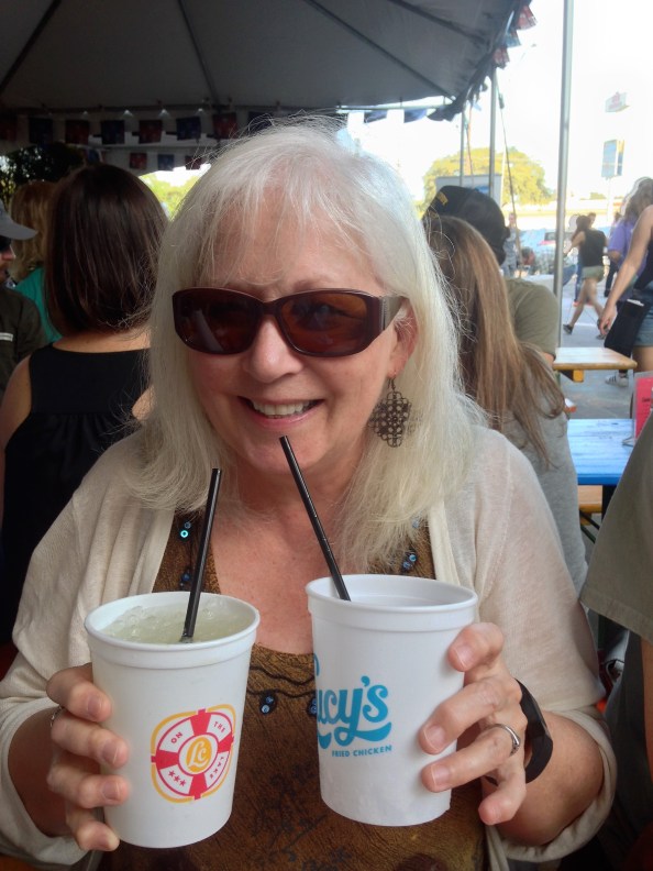 And here we have a little partying goin’ on at the Floater, on the lake. We were in the midst of a heat wave and needed lots of fluids.