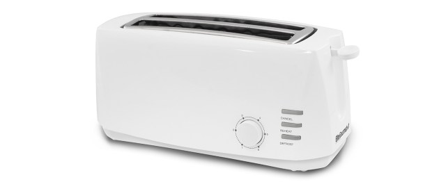 This is my new Elite Cuisine Model 4829 toaster. And yes, this sucker is very long. It’s designed to toast those long slices of sourdough bread of which Banjo Man is so fond.