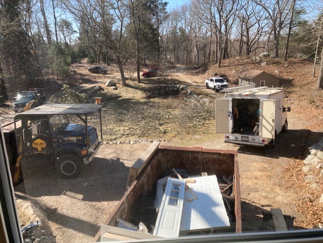 Our horrible old slider was removed and replaced, too.  Check out the old front door in the dumpster.