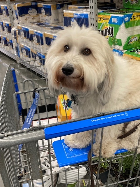 I’m not in the habit of talking to dogs who are shopping with their owners in Walmart, but this funny girl looked very much like Keeley, our daughter’s dog from years past. I knew Nancy would get a kick out of seeing a photo of Keeley’s lookalike.