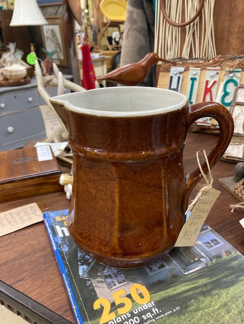 Here were the candidates. I texted their pictures to Banjo Man. He is not completely I-phone-trained yet–and may never be–so it was not a smooth process. I ended up describing each one and we agreed we liked the brown pitcher best.