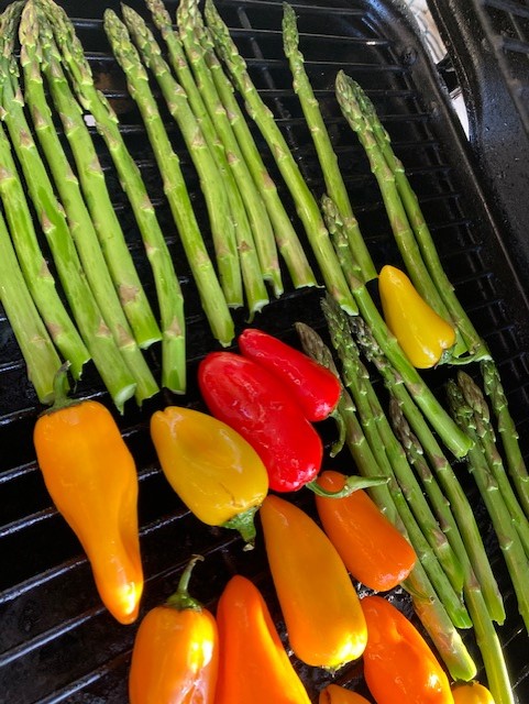 Lest you think we are not eating healthy enough, let me show you Thursday night’s dinner. Marinated, grilled chicken breasts and these: