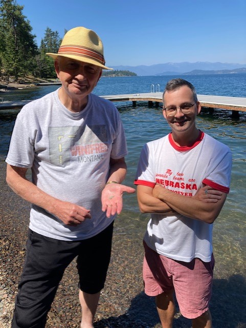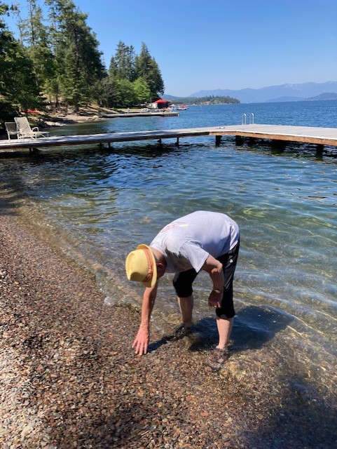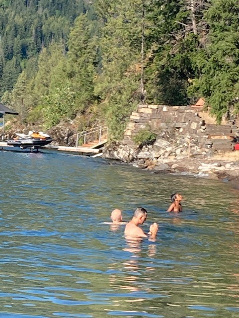Yesterday morning as Banjo Man and I were drinking coffee on the deck and talking about the weather and all things Idaho, son  Will came up from the beach after a rare morning visit to the lake.  He is usually studying in the morning, but I suppose he wanted to  wade in the water before it got too hot.