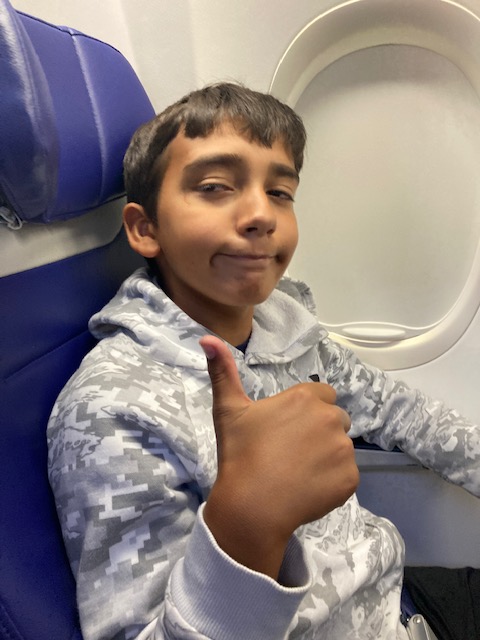 Before we knew it we were on the flight to Denver. Our Kindles were charged, we had snacks and plenty to read. I’d always wanted to travel with the Funny Grandson.