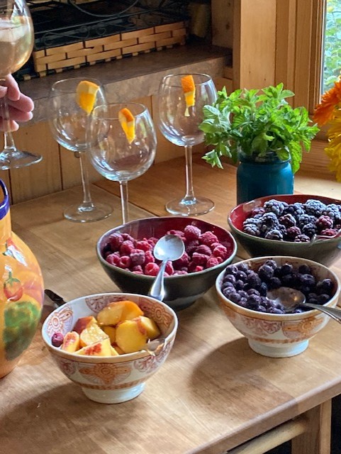 Six of us gathered to eat and sip and talk and laugh beside the Clark Fork River. Lunch was seafood paella, roasted garden beets and freshly baked baguettes (thank you, Martha).