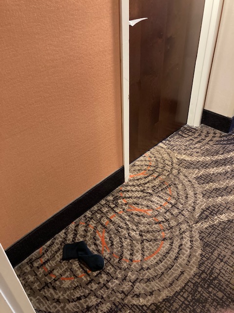 Someone left a sock outside our hotel room door. It was still there the next morning when I returned from the breakfast room, thank goodness, because I had forgotten my room number.