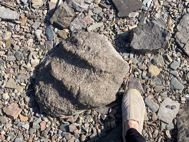 This rock (boulder??) is usually underwater, close to the dock. But the water is still low and, while it is coming up fairly quickly, I have time to ponder it.