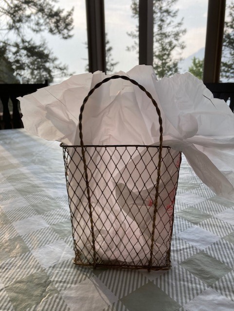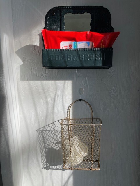 My mission, given to me by Banjo Man, was to find a holder for a package of hand wipes and a very small, very narrow basket for their disposal.