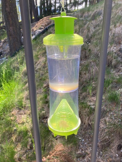 The hornets ignored the traps for days. I added honey to the water in one and apple cidar vinegar to the other trap (the upper chambers are designed for liquid).