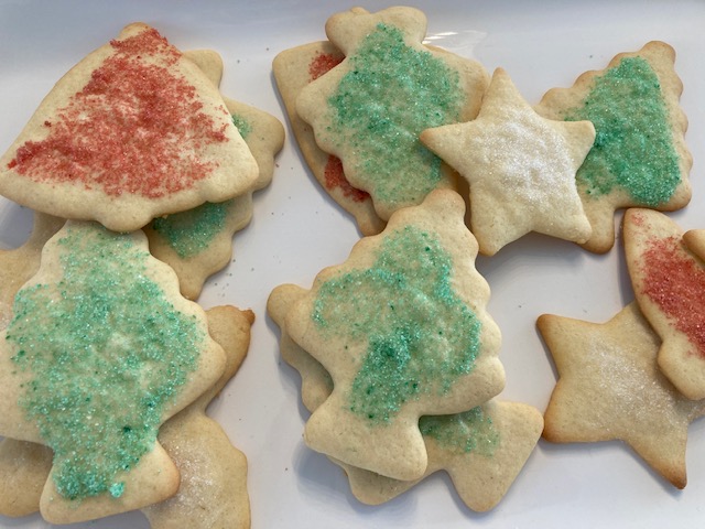 Making these cookies brought back so many lovely memories. I wallowed in them as I rolled and cut and sprinkled and baked. I missed those loved ones, now gone, and the excited little children who are now in their 40’s and–gulp–50’s. Generations of my family loved baking and decorating those cookies, and many, many children delightedly frosted their favorite shapes at cookie parties.