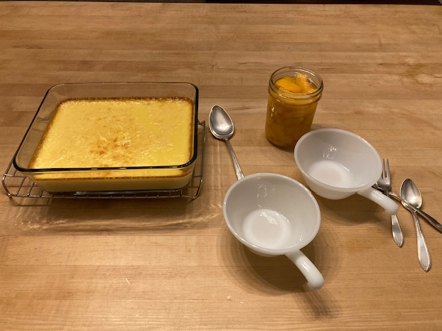 Banjo Man made a pot of Texas-style pinto beans, I put together a pan of ham and cheese sliders and also baked Amish custard. My happy husband took this picture and wanted it posted here.