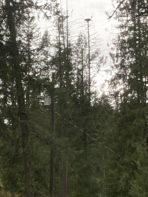 Not the best picture, but this is the view of the osprey nest (taken from the screened porch). We’ll be able to watch the show this summer as the ospreys come and go. The pair are in their nest and I assume are sitting on the eggs. Stay tuned.