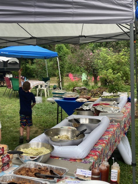 We’d thought the temps would hit 100, but we lucked out with an overcast afternoon of about 80 degrees. Kathy comes from a family of nine, so you can imagine the number of siblings, nieces, nephews, sons, daughters and grandchildren who were there. They camped all over the property for days and came from California, Vermont and points in between.