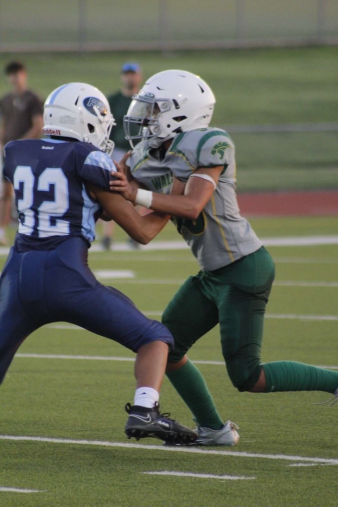 It’s football season in Texas. “Friday Night Lights” means high school football, of course. But the Funny Grandson’s season began last Wednesday night (although it will be on Tuesday from now on). From what I understand, Mondays are for 7th grades, Tuesdays 8th, Thursdays JV.