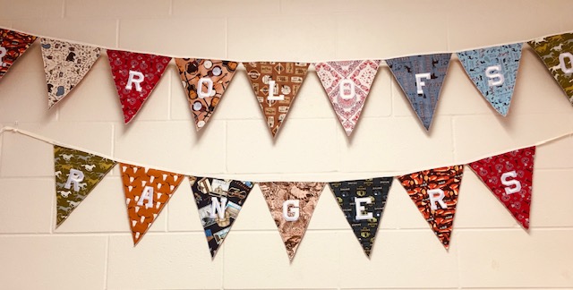 That project finished, I had the bright idea to create little quilts for story time using the leftover fabrics. Little quilts are great fun to make, so I made seven of them before the weather changed, the sun came out and my Texans arrived.