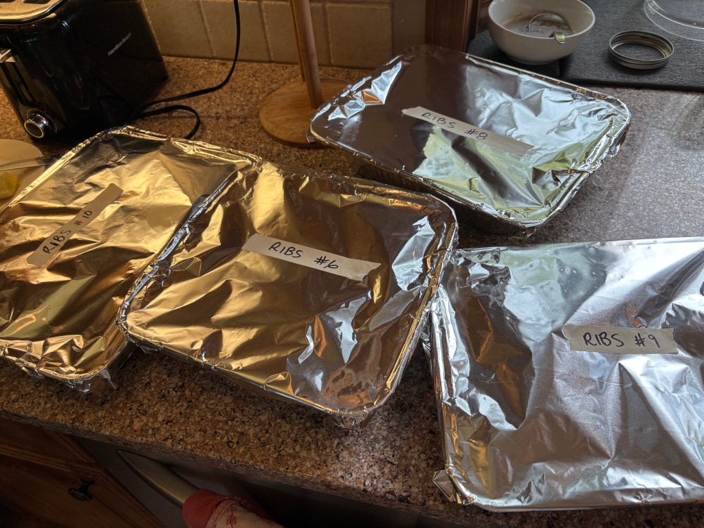 I am slowly getting more energy, which means I can put ribs in the oven to cook for 6 hours and I can put pork roasts in the crock pot to cook for 6 hours and I can jam chicken breasts into the crock pot to cook for 6 hours.