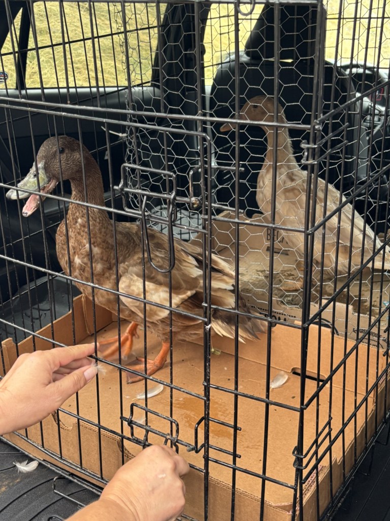 Three adults and two ducks were very, very happy. Dorothy has gone to a little farm a few miles east of here. She will have three duck friends and a flock of chickens to hang out with.