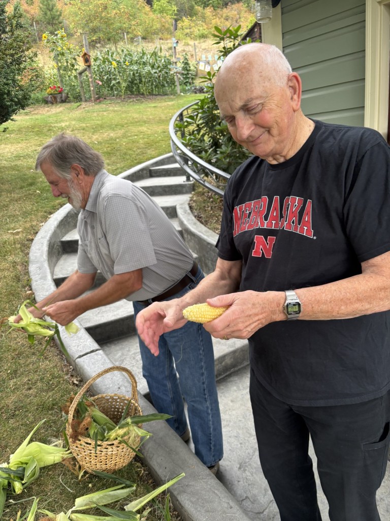 What you see in this photo is the best corn in the world, grown by Dancing Mandolin Player and her Boyfriend Bob. Decades ago, when we were all young and frisky, DMP and Bob would throw massive “corn parties”. Everyone brought food, but the highlight was the freshly picked corn from the garden.