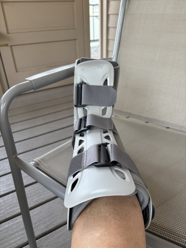 The doctor actually sneered at my little “post op shoe”, declaring it wouldn’t do any good. A tendon in my leg had broken a bone in my foot as it rushed to protect my ankle. The tendon needed to be stabilized all the way up to my knee.