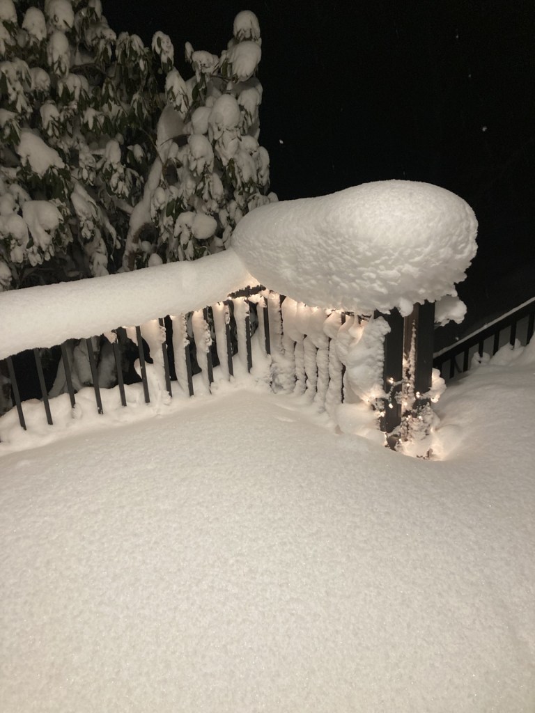 Yesterday we watched as 36″ of snow (yes, 36) and fell all day long, along with wind gusts of up to 80 mph.