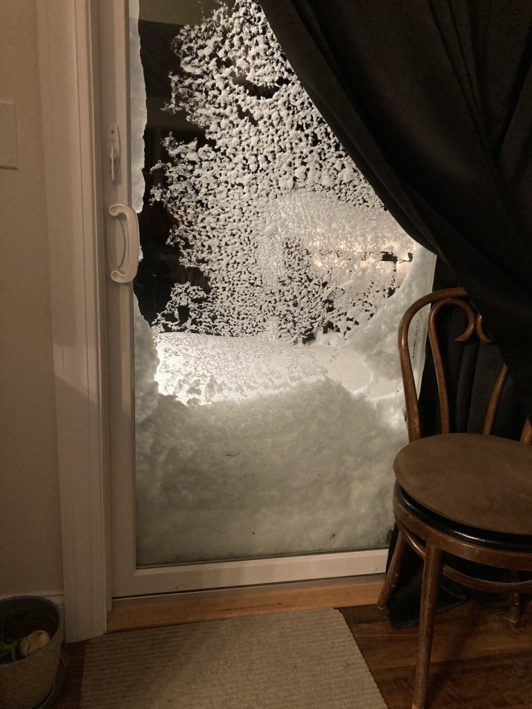 We had stored our food from the freezers in coolers with ice packs by two doors. It seemed like a good idea at the time because we were sure we would lose power, but now those three coolers are hidden under three feet of snow.