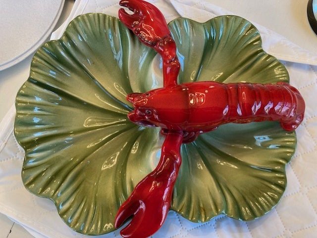 In a fancy antique shop in the center of town I saw a familiar sight: Grandma’s lobster dish. It was priced for close to three hundred dollars. I pointed it out to Ben and told him, “I have one just like this. It was Gigi’s.”